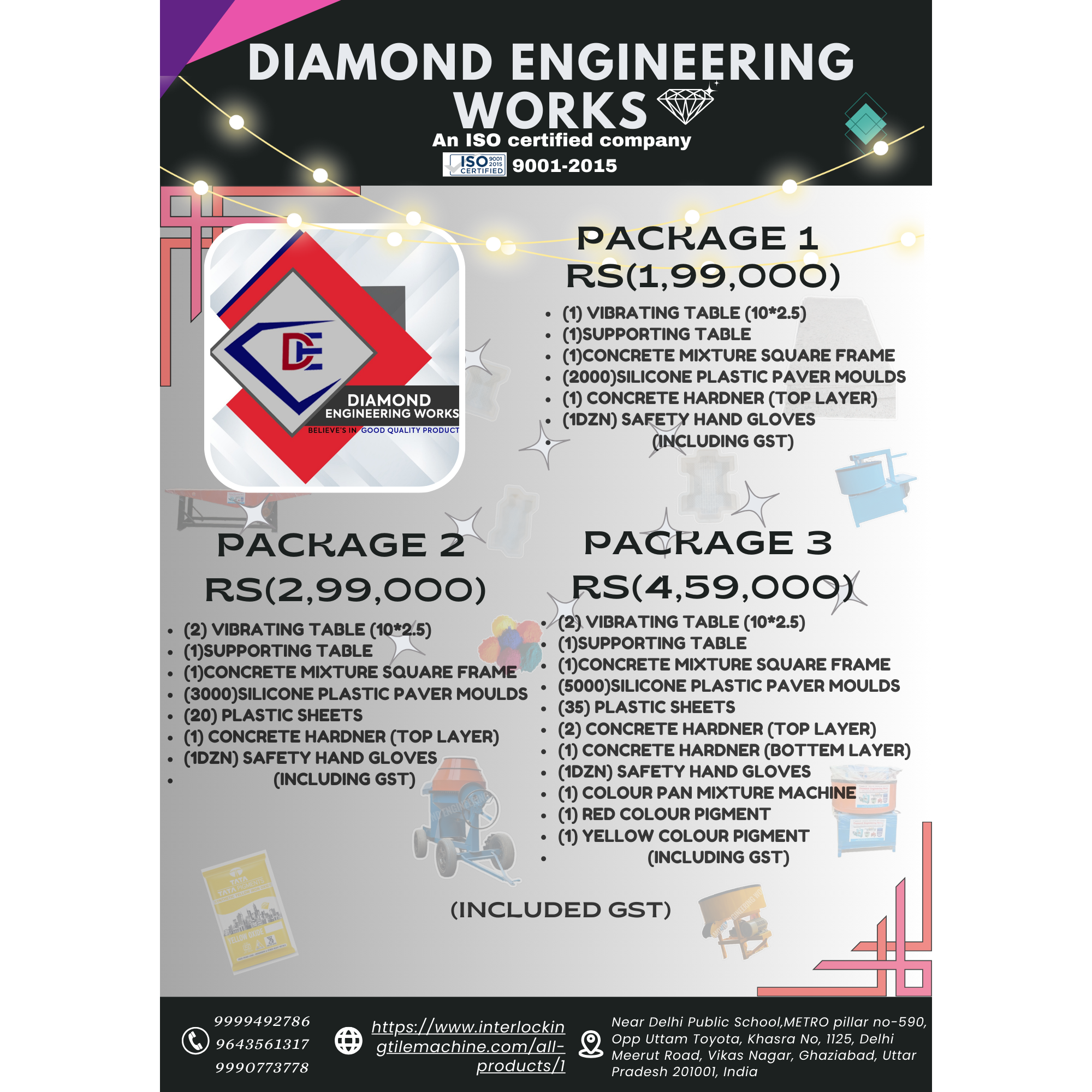 For customers looking for higher production with better machinery, we provide a mid-range Paver Block Making Plant package at ₹2,99,000, capable of producing 3000 bricks per day. This package comes with best quality equipment, improved durability, and higher efficiency, making it suitable for small to medium-scale production units.